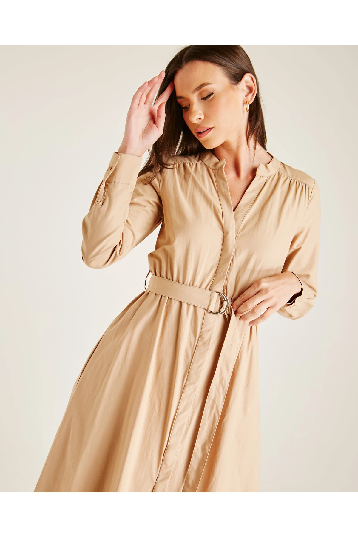 Be the first to review “Dusty Pink Buttoned Front Belted Shirt Dress | Beige” Cancel reply