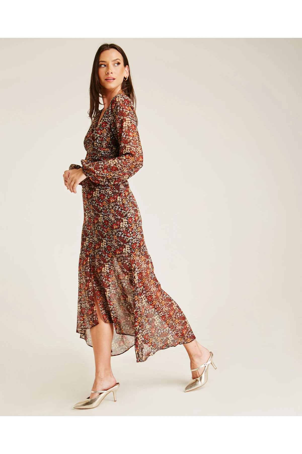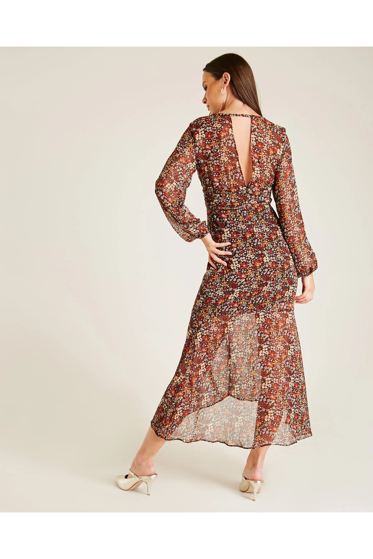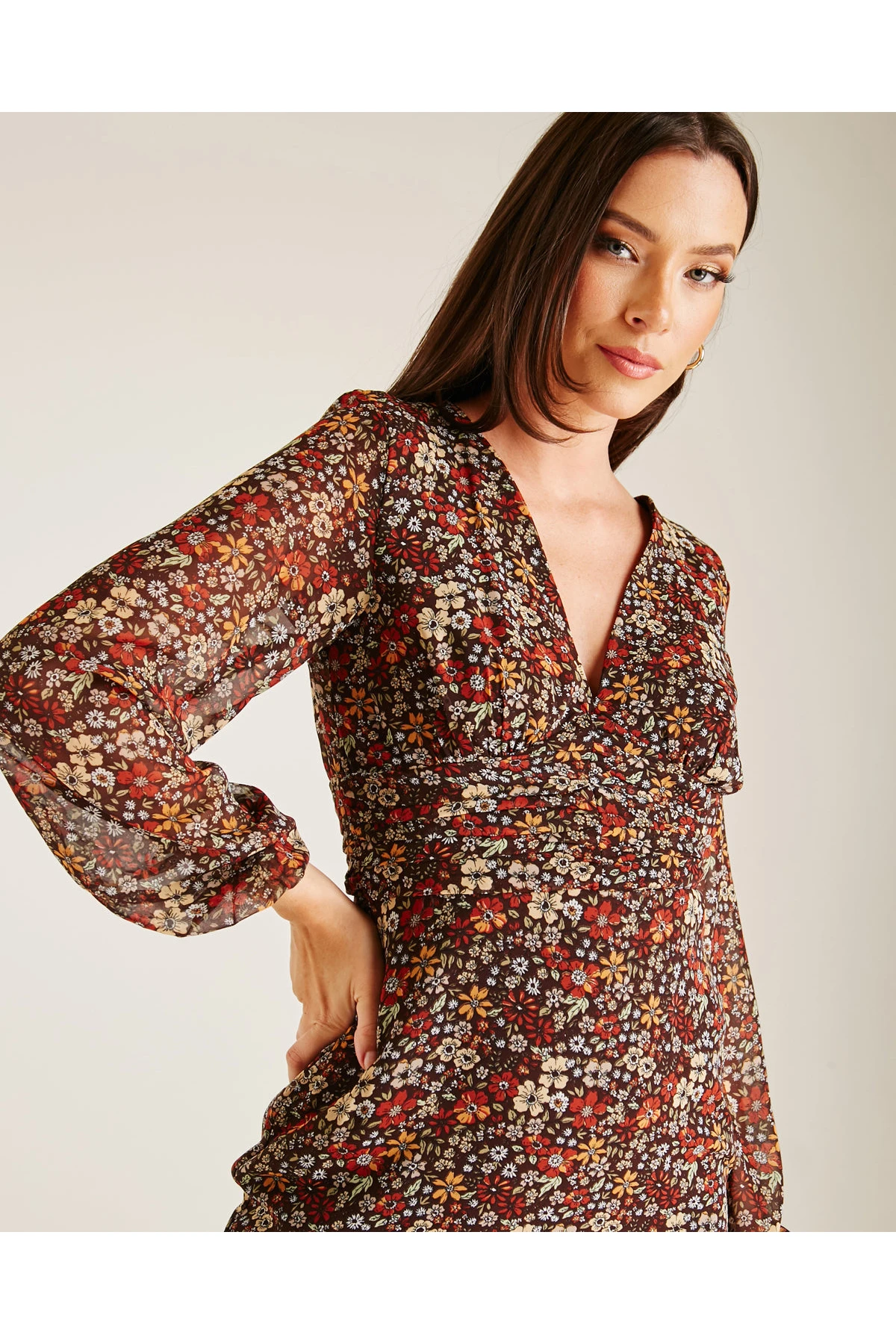 Hoxton Gal Oversized V Neck Detailed Floral Print Mini Dress