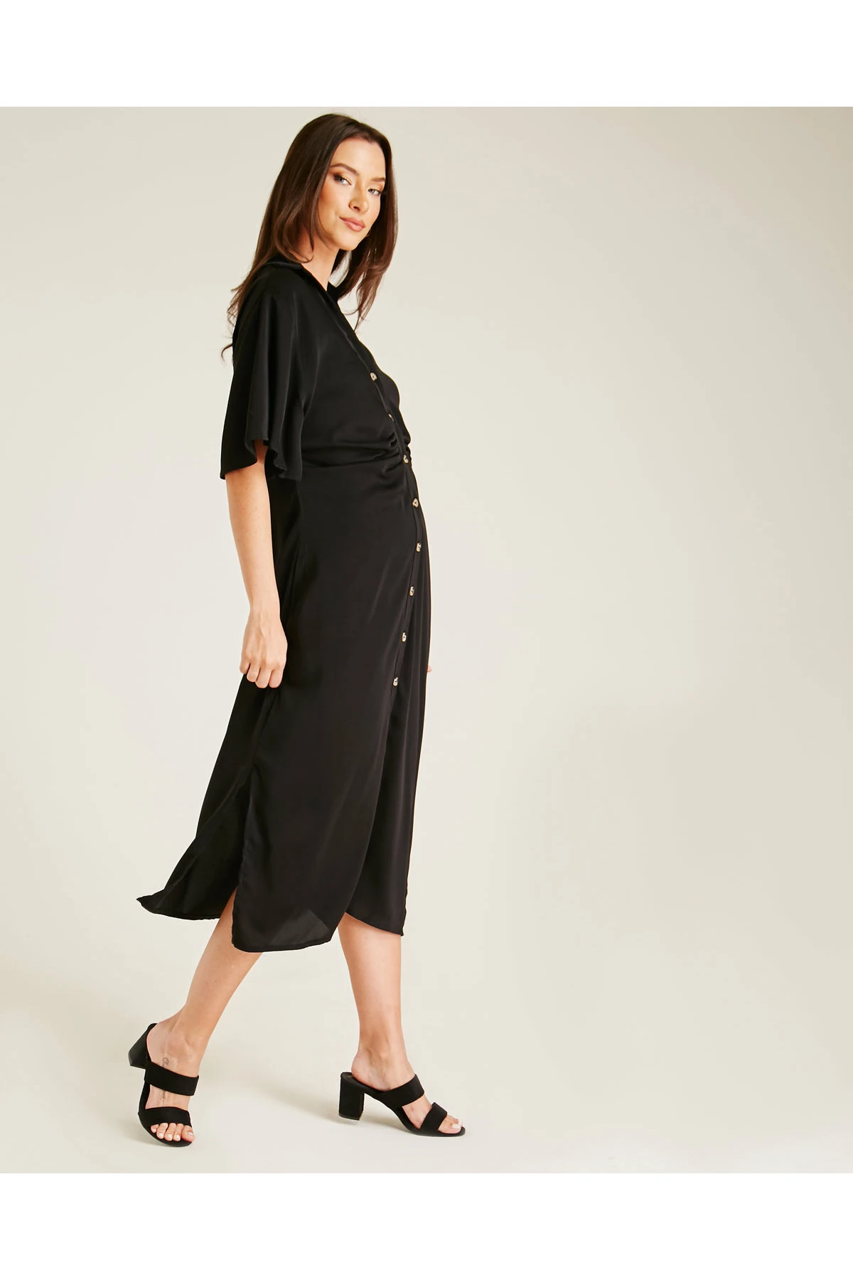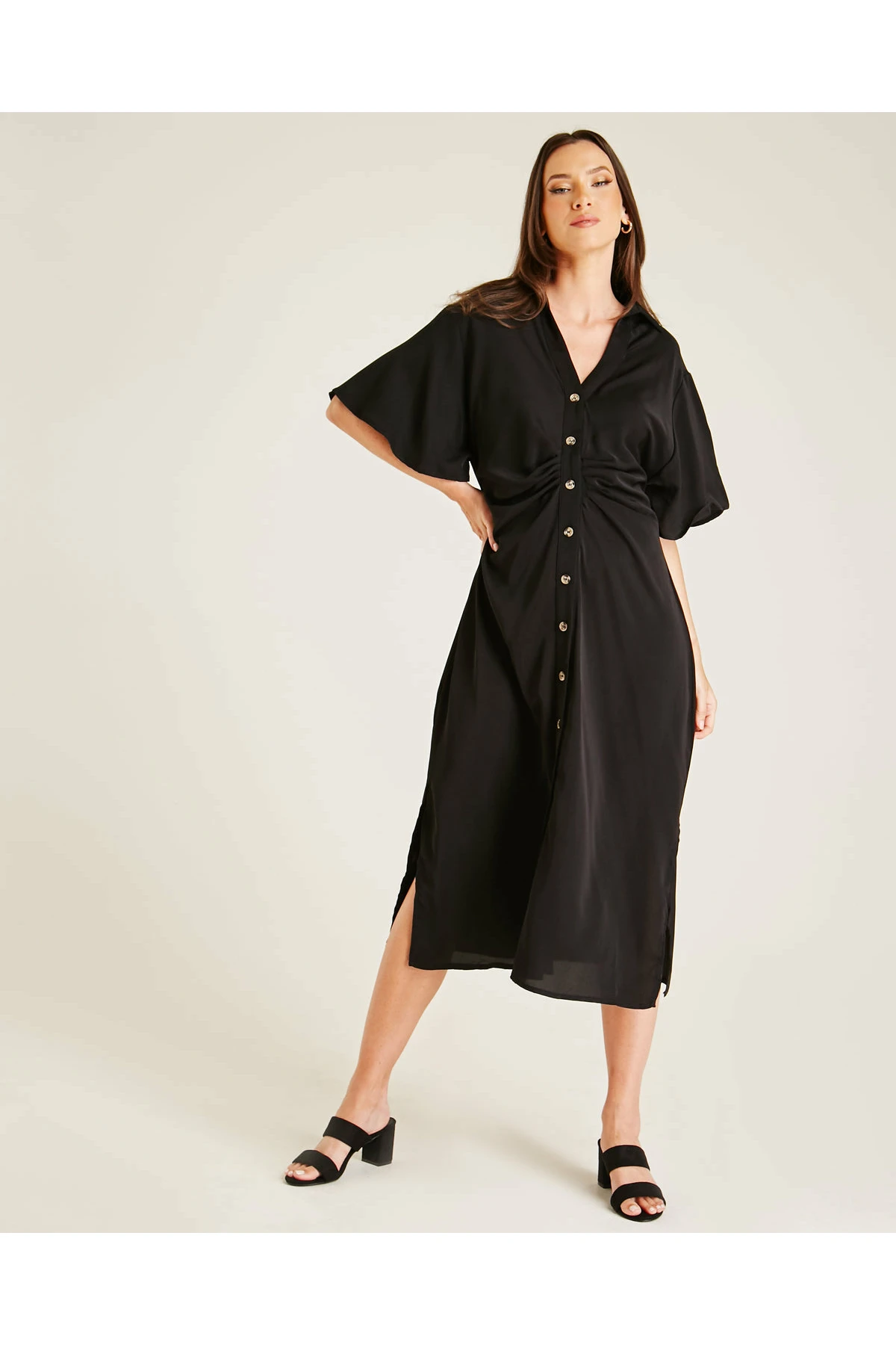 Be the first to review “Dusty Pink Ruched Front Button Up Dress | Black” Cancel reply