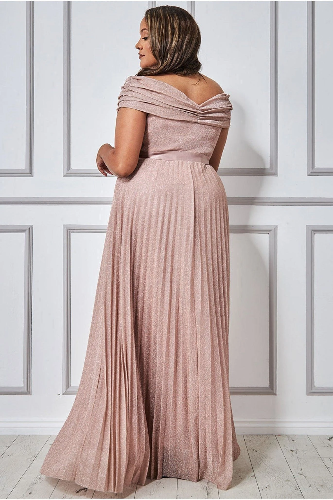 Be the first to review “Goddiva Bardot Pleated Skirt Maxi Dress – Blush” Cancel reply