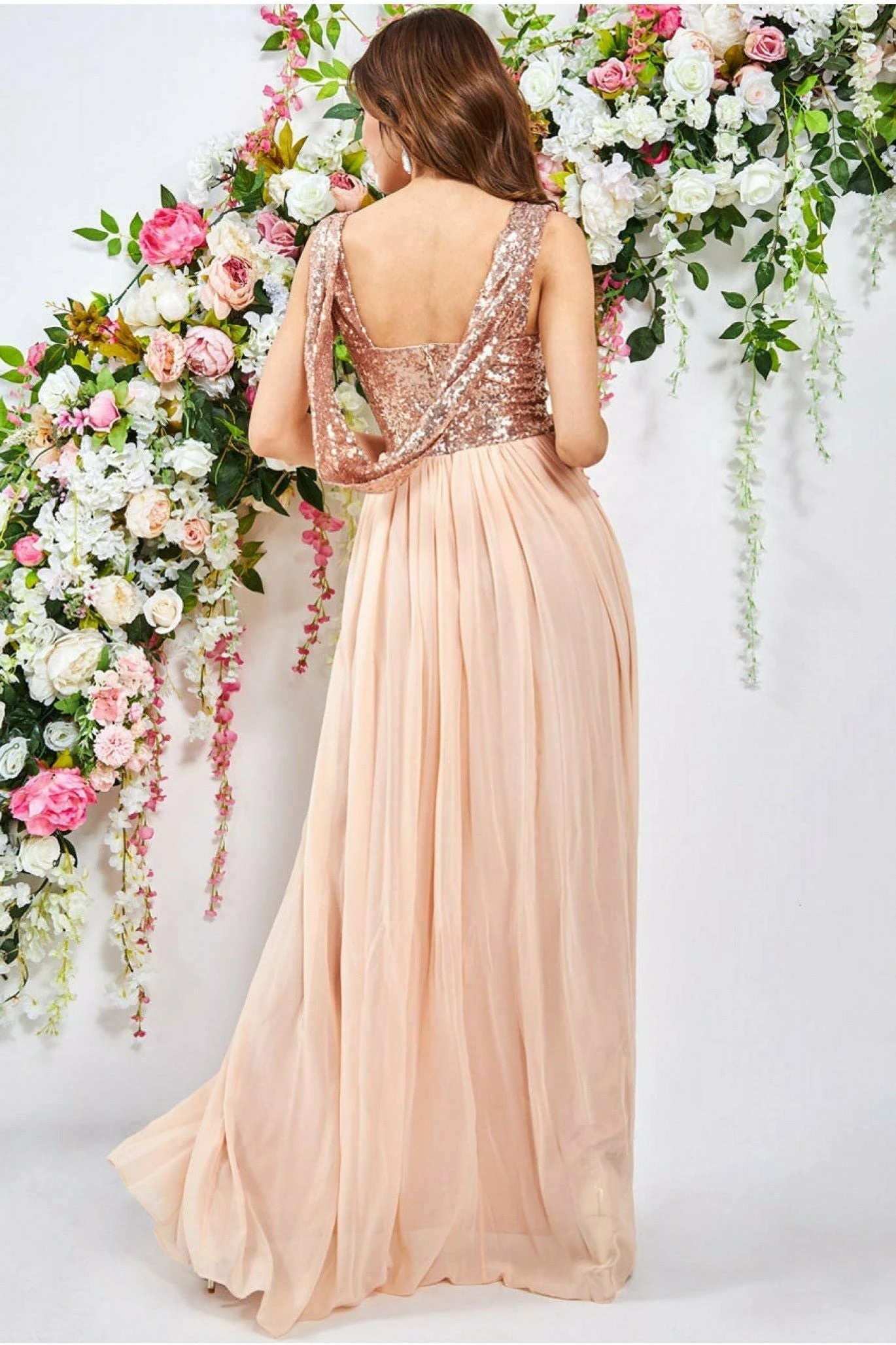 Be the first to review “Goddiva Cowl Back Sequin & Chiffon Maxi Dress – Champagne” Cancel reply
