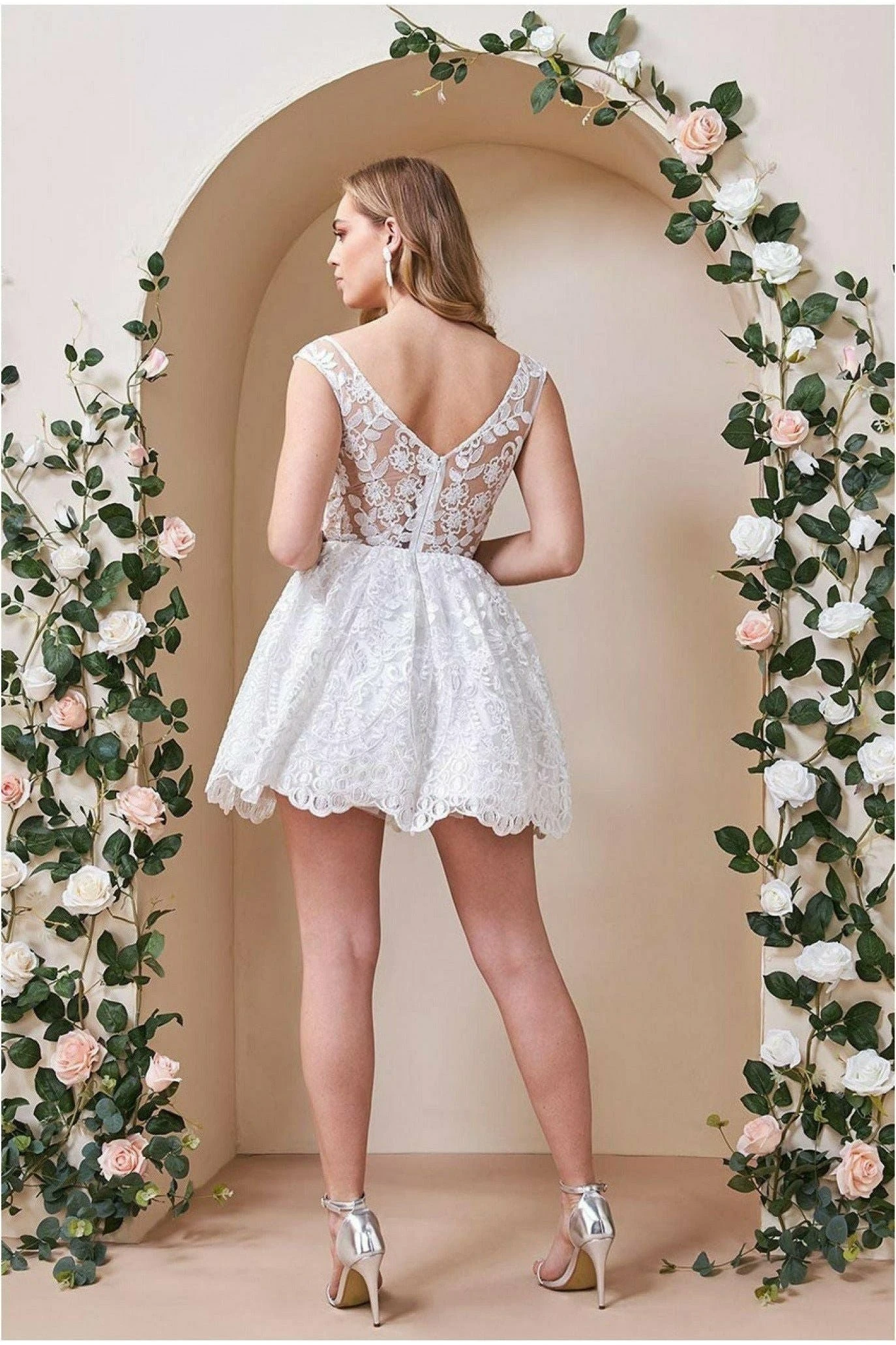 Looking for the perfect party dress? Well, look no further. Goddiva has your desires met with this lace-back mini skater dress. This delicious light white party dress is everything you need this season. With its classic skater style, a short length and all-over lace finish, this pretty white dress is a perfect choice for prom, date nights, cocktail parties, birthdays, bridesmaids and wedding guests. This mini dress is also a great choice for the summer holidays. Its scalloped hem offers a decorative touch to an already sensational style. This cute summer dress is perfect for any occasion.
