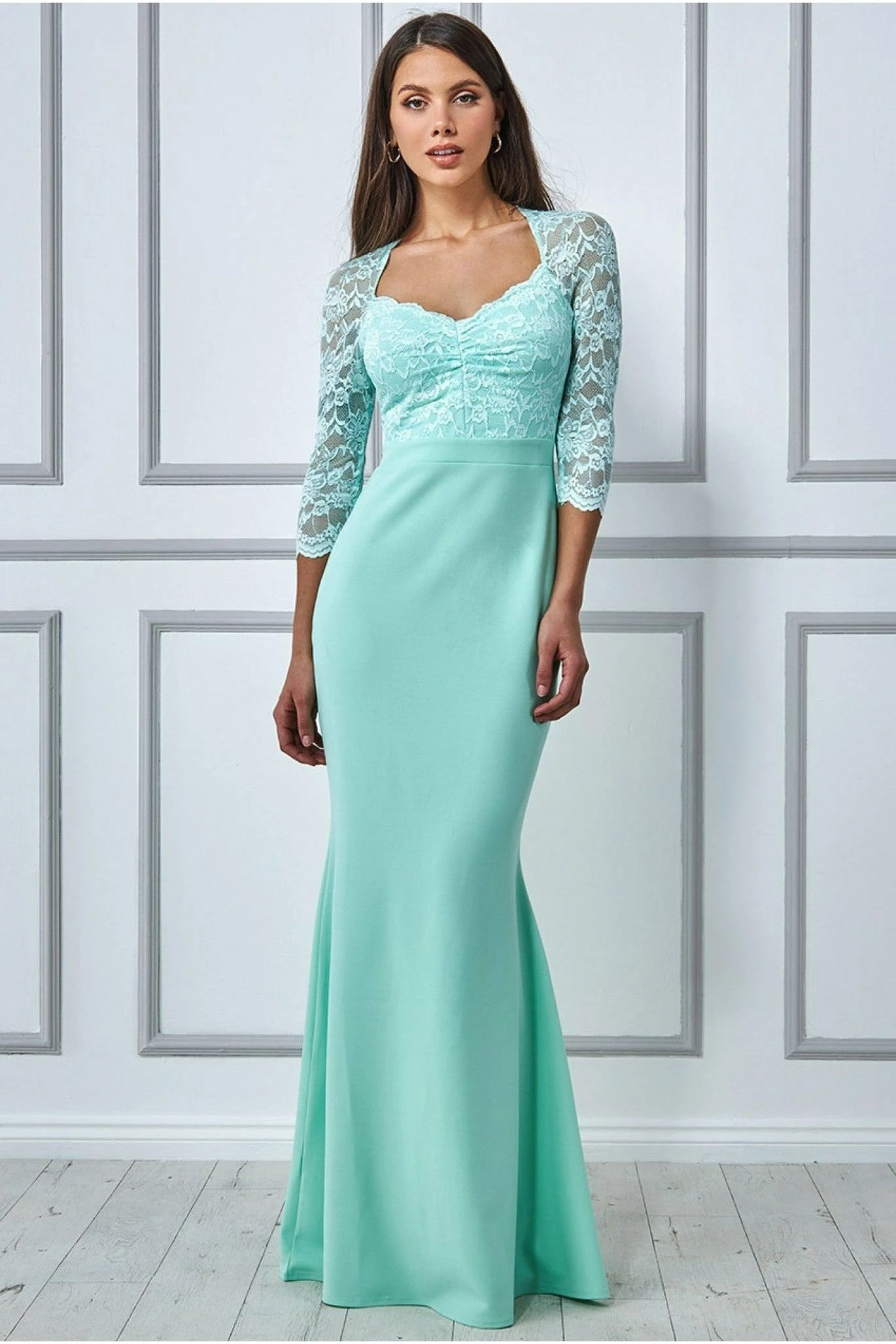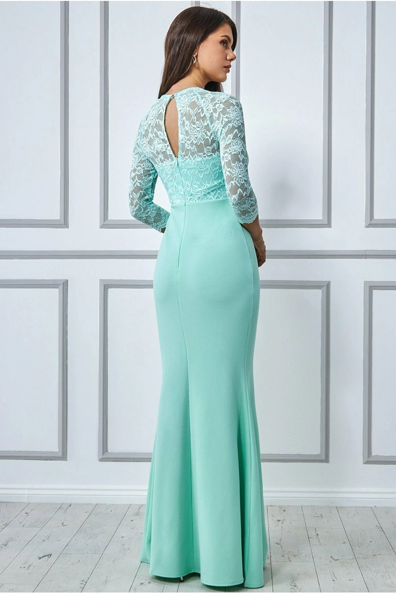Be the first to review “Goddiva Lace Bodice Maxi Dress With Sleeves – Mint” Cancel reply
