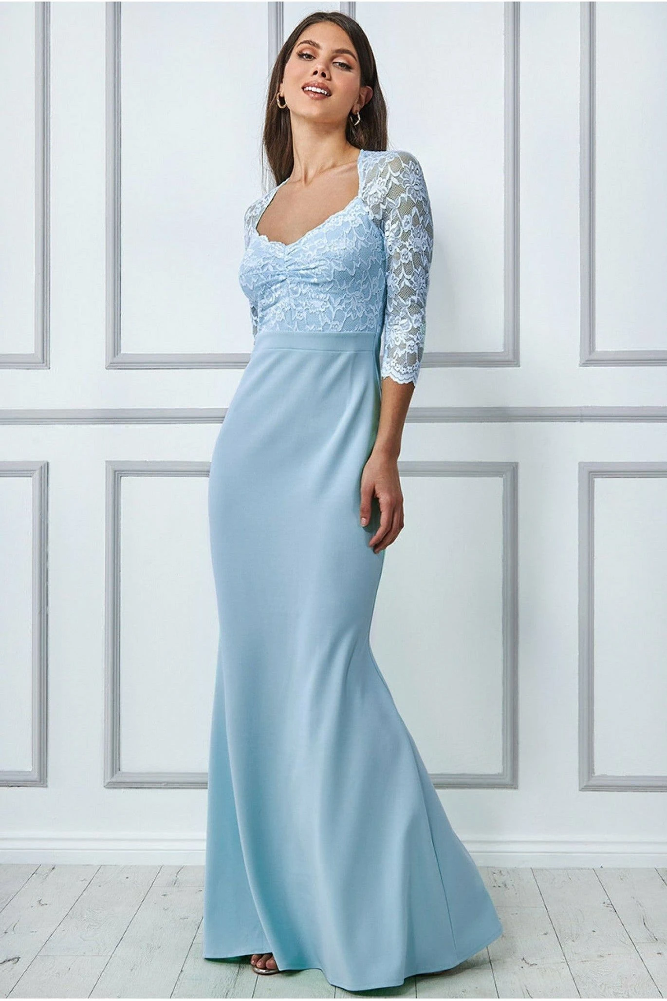 Be the first to review “Goddiva Lace Bodice Maxi Dress With Sleeves – Powder Blue” Cancel reply