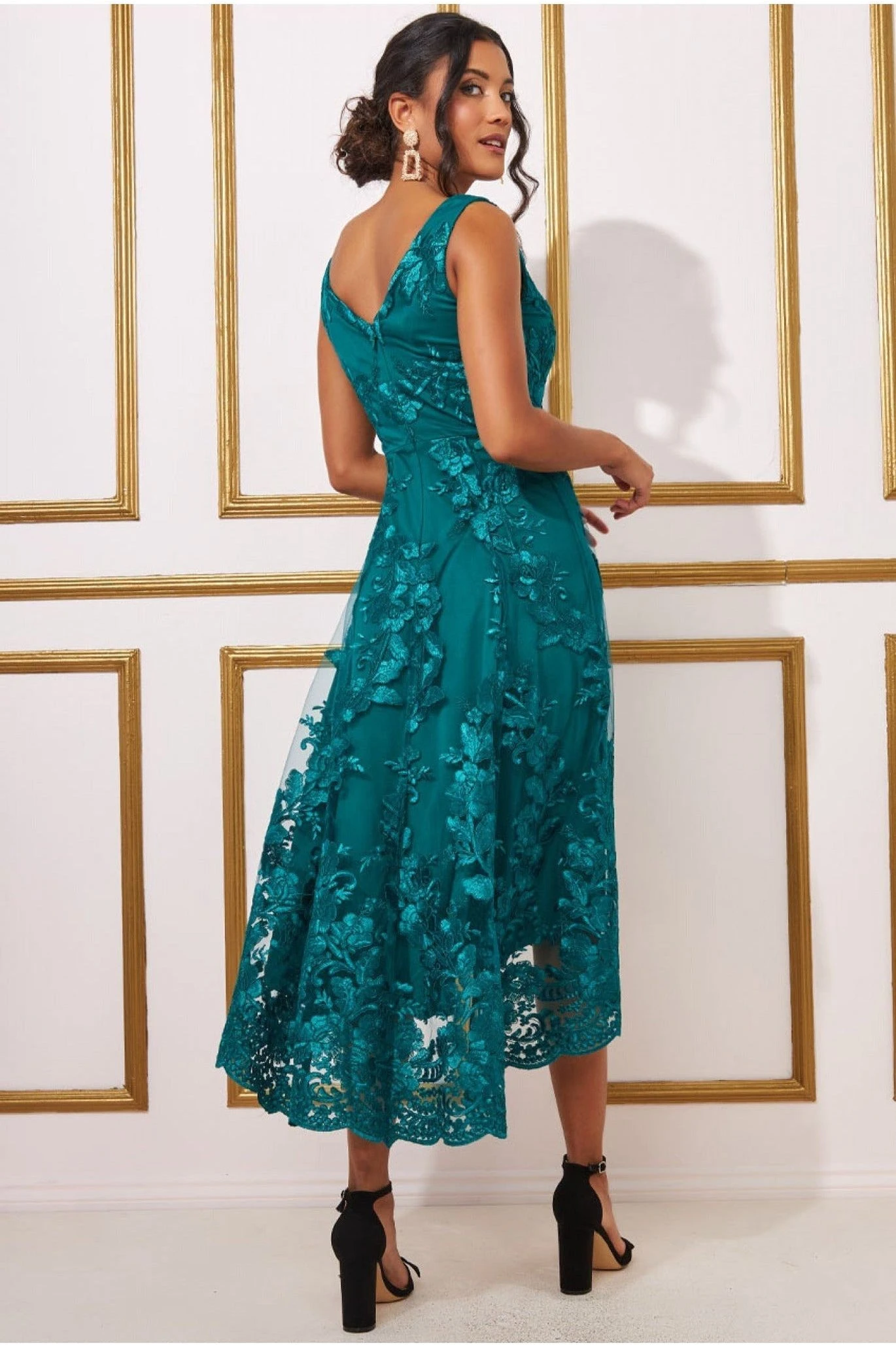 Be the first to review “Goddiva Scalloped Neck Lace Midi Dress – Emerald” Cancel reply