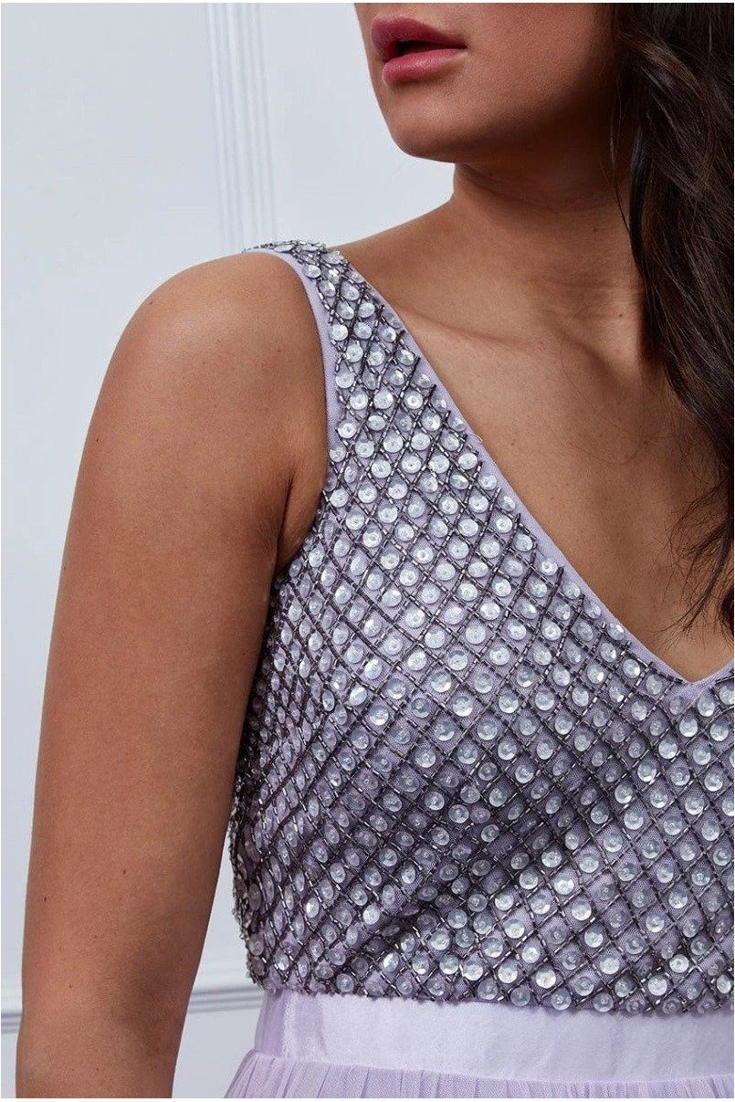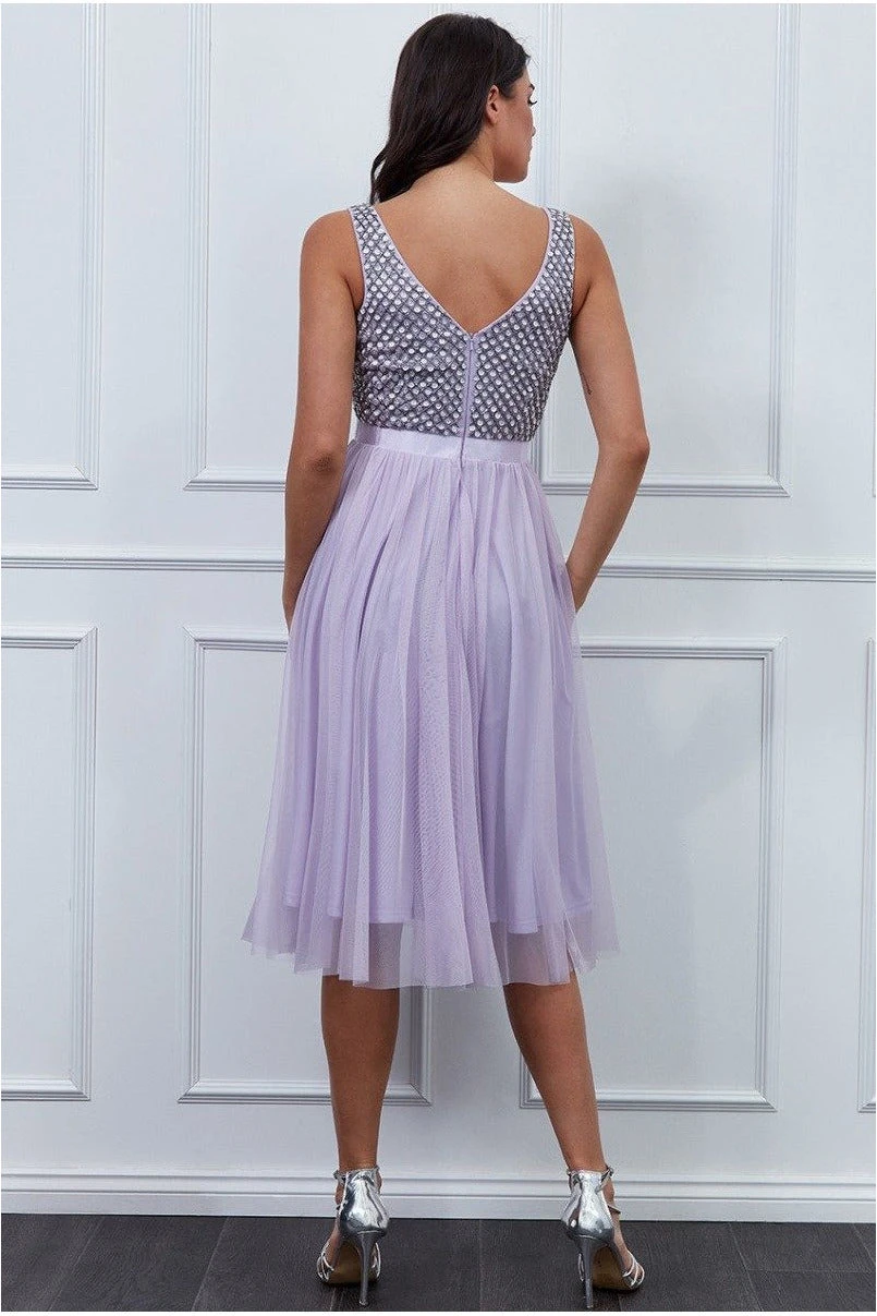 Be the first to review “Goddiva Sequin Bodice Pleated Midi Dress – Lavender” Cancel reply
