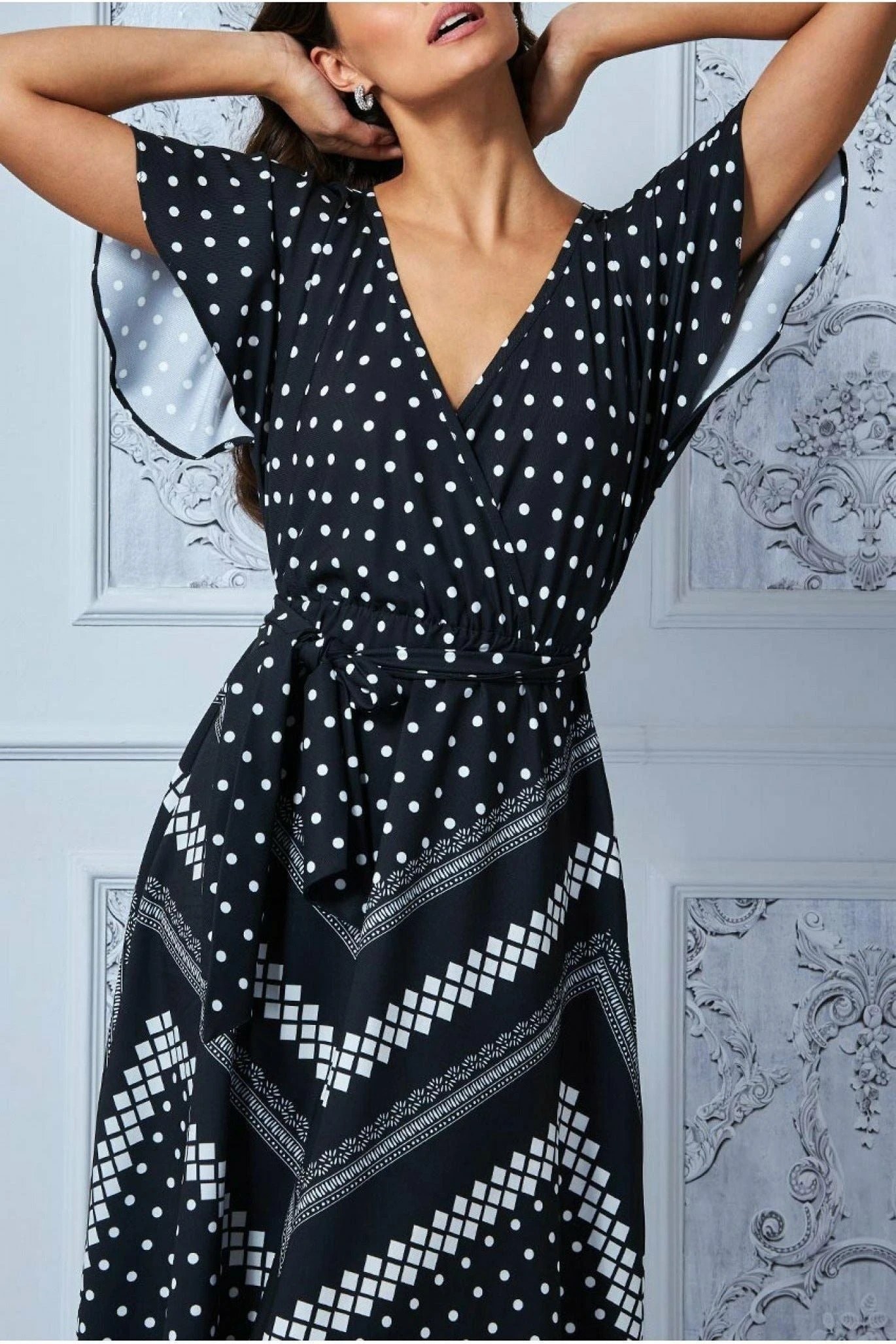 This wrap style flutter sleeve printed midi dress is the perfect choice for the season’s occasions, be it for wedding guests, brunches, dinners, date nights or even for christmas day, this black midi dress is for you. With its classically faultless design, this floaty dress is also a perfect pick for holidays. Its darling flutter sleeves, wrap style and skater inspired skirt makes this dress a top choice for any season. With its timeless black colour, this dress will never fail you. A wrap-style dress is most likely the most flattering of styles for a woman as it helps to show off that incredible figure, with the belt on the waist giving you the opportunity to indulge in showcasing your darling silhouette.