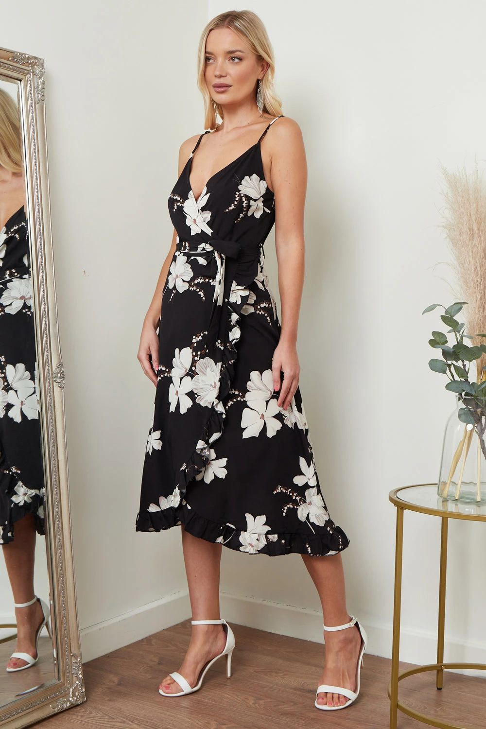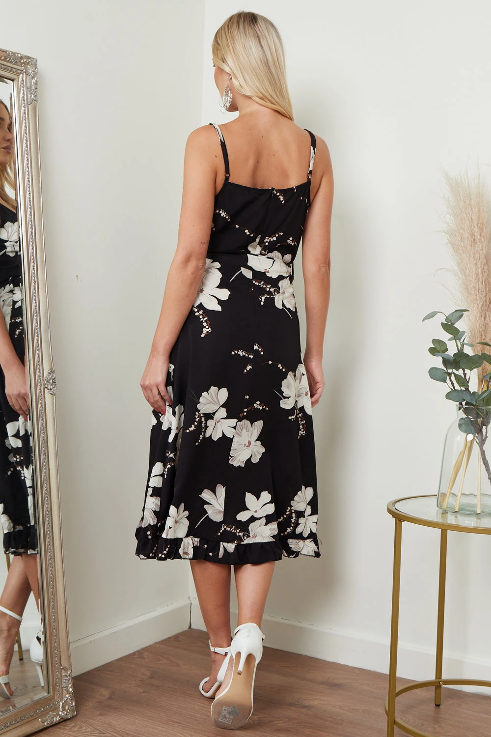 Get ready to step out in style this summer with our stunning Black Floral Print Cami Midi Dress! The beautiful floral print will add a touch of elegance to any occasion, from a casual day out to a special event. The delicate frill details and strappy design make this dress perfect for those warm summer days, allowing you to feel comfortable and chic at the same time. Wear this dress to a garden party, a wedding, or even a night out with your girlfriends. Its versatile style makes it suitable for any occasion. Pair it with sandals or heels, depending on the event, and add your favourite accessories to complete the look. Don’t miss out on this must-have dress for your summer wardrobe.