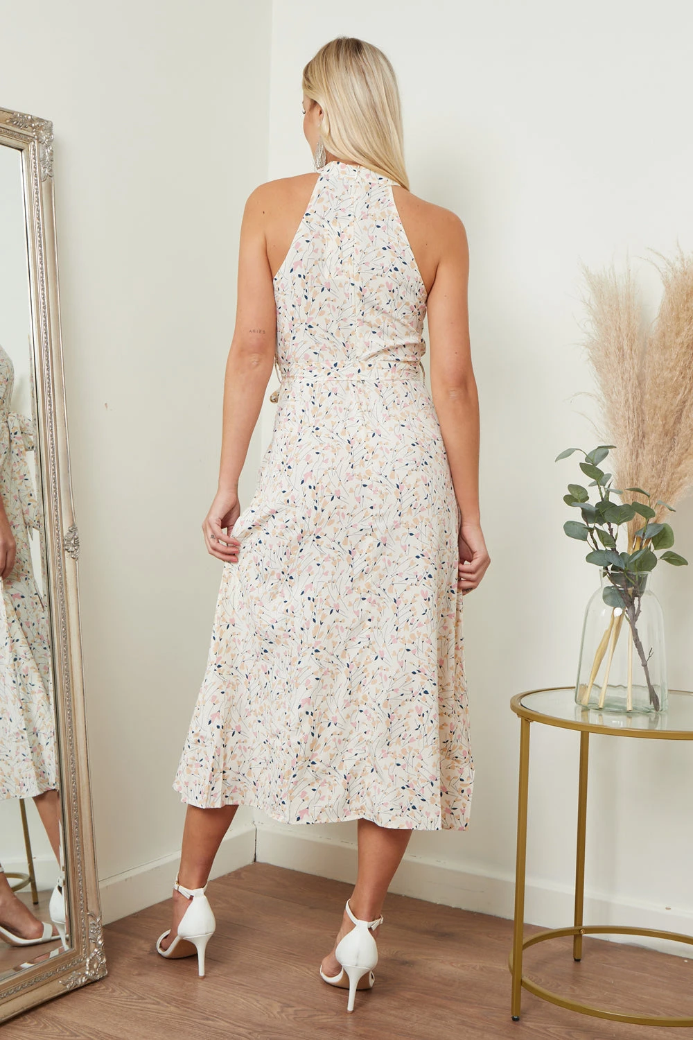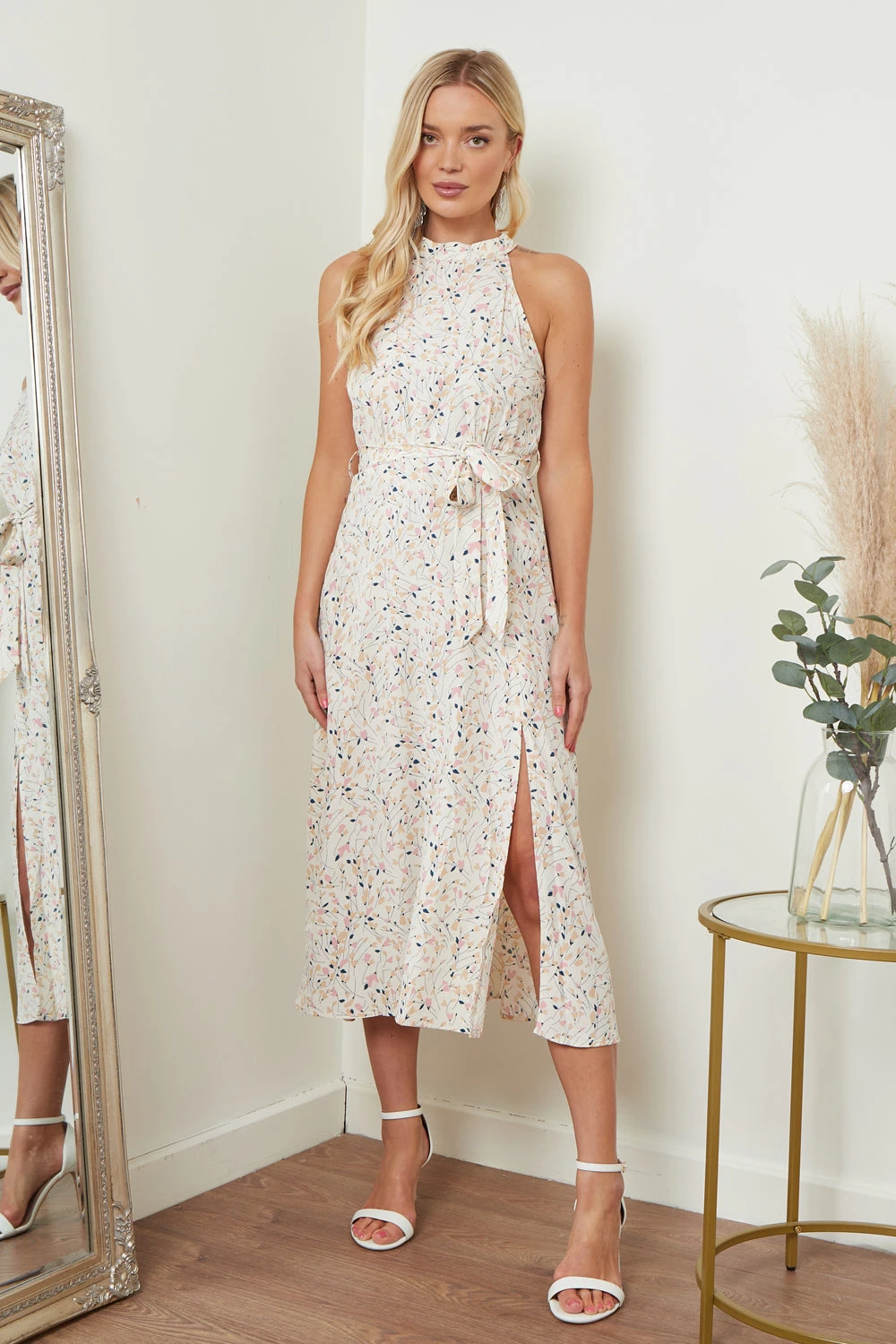 Elevate your summer style with our Floral Print Halterneck Maxi Dress and step out in confidence and style. This stunning dress is perfect for any occasion, from garden parties and holidays to casual drinks with friends. Crafted from high-quality fabric, this dress boasts a sleeveless design that is perfect for warmer weather. The stunning all-over floral print is sure to turn heads, and the halter neckline adds a touch of elegance to this stylish dress. Pair it with strappy sandals for a casual daytime look or dress it up with heels and statement jewellery for a more formal event.