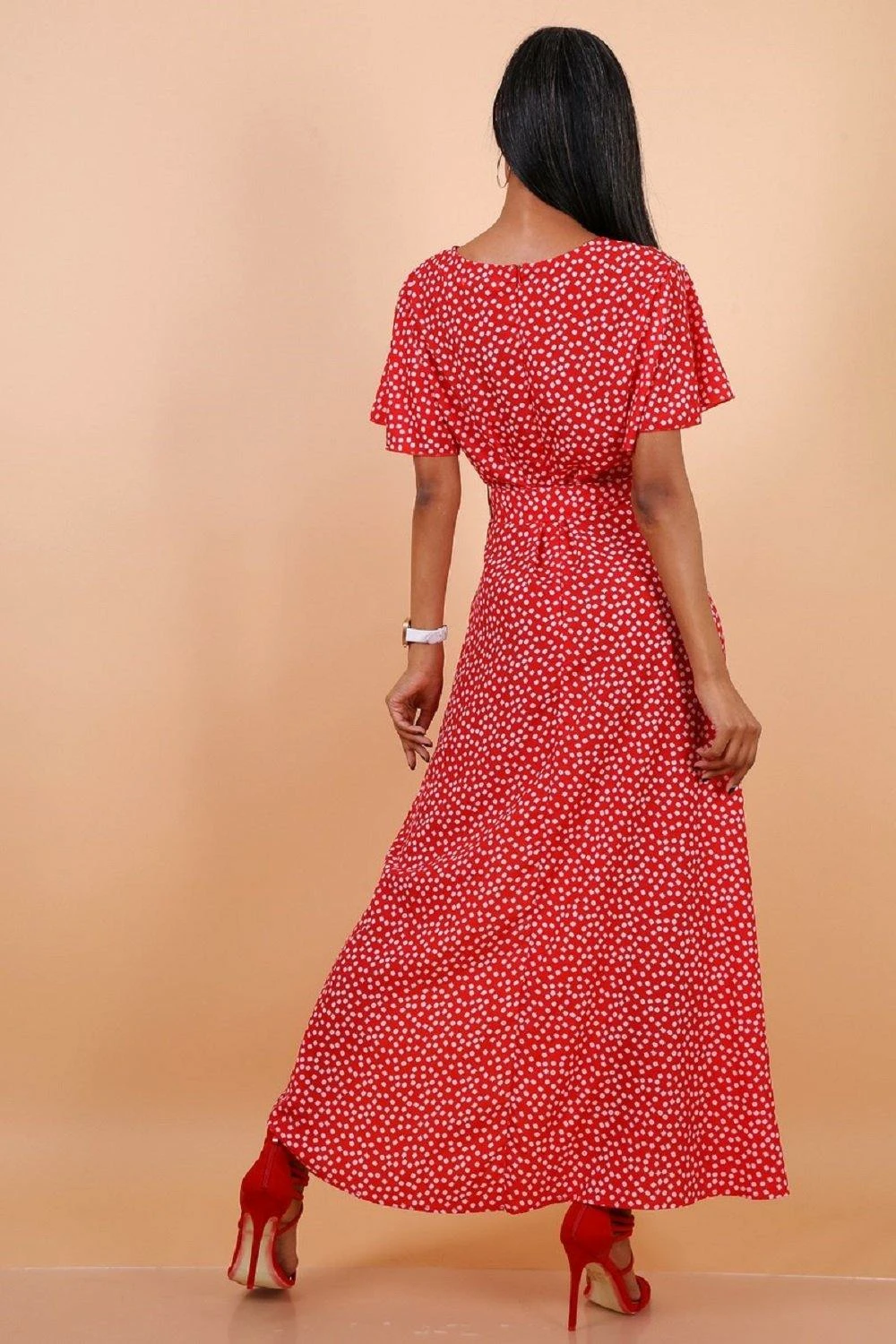 Be the first to review “Lilura London Wrap Front Split Leg Maxi Dress Red Daisy Dot” Cancel reply