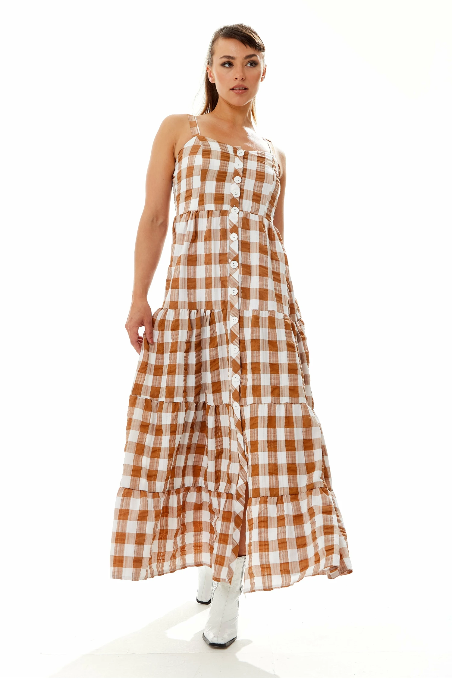 Be the first to review “Liquorish Gingham Print Maxi Dress In Brown And White” Cancel reply