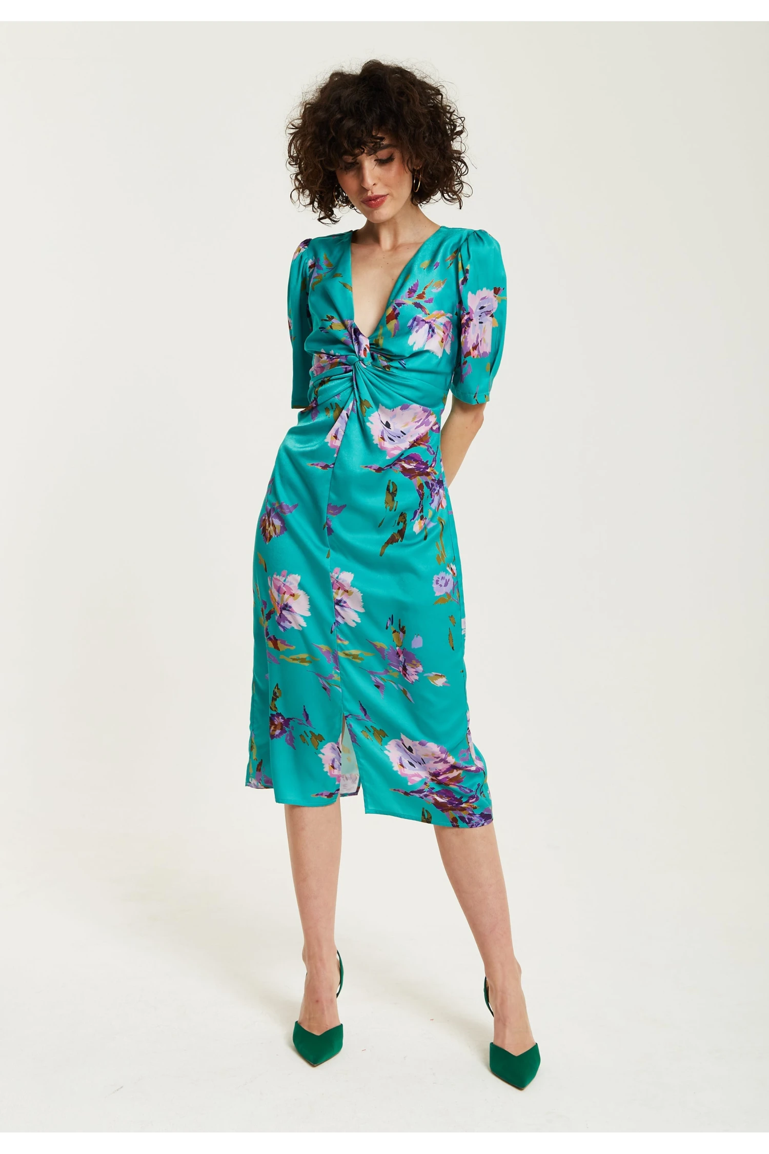 Be the first to review “Liquorish Green Floral Knot Front Midi Dress” Cancel reply