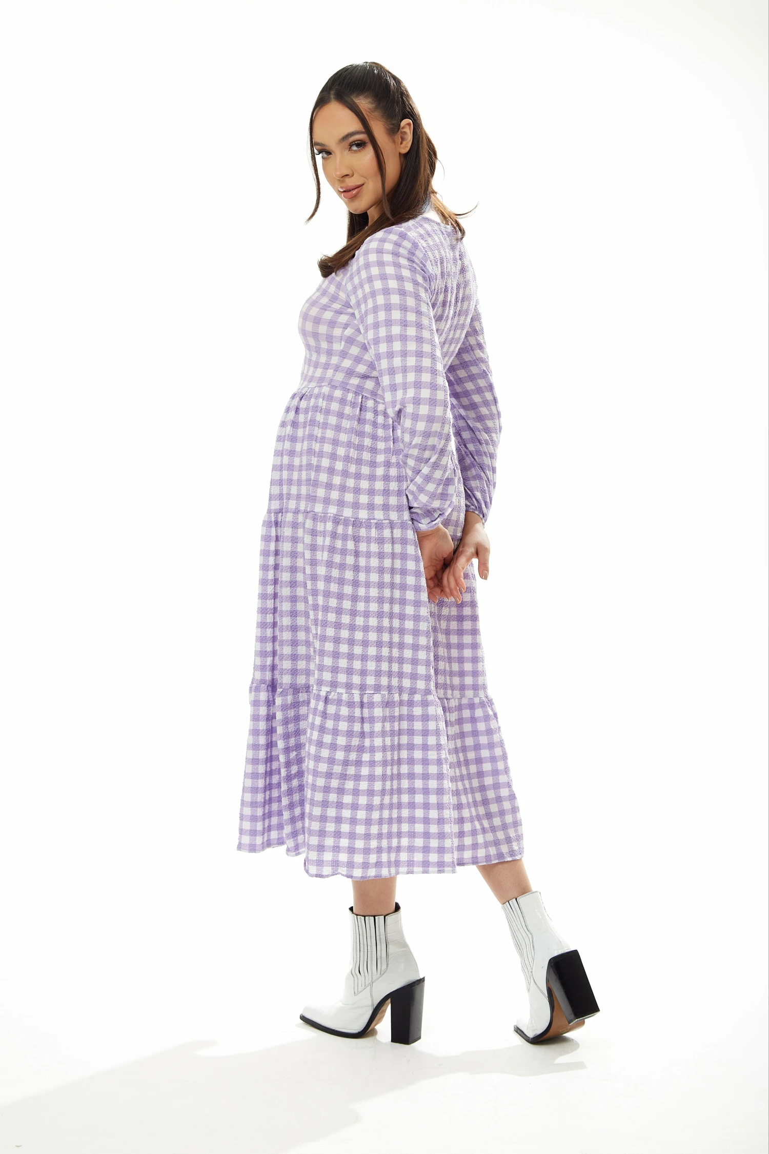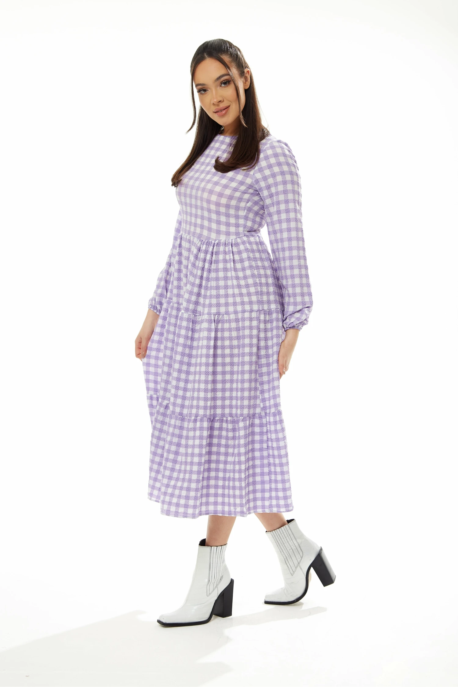 Be the first to review “Liquorish Long Sleeves Gingham Midi Dress – Lilac White” Cancel reply