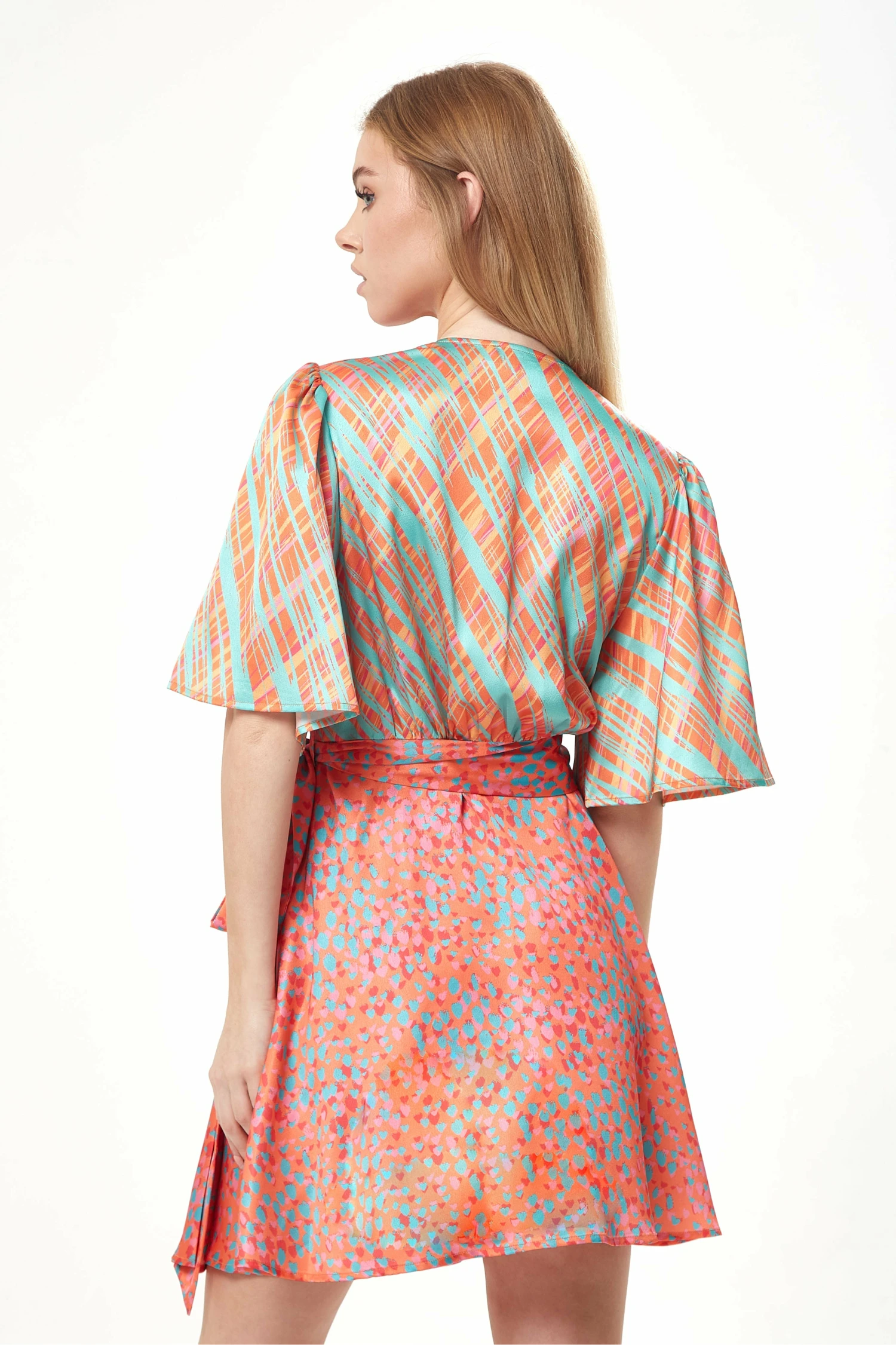 Be the first to review “Liquorish Orange Printed Mini Wrap Dress With Kimono Sleeve” Cancel reply