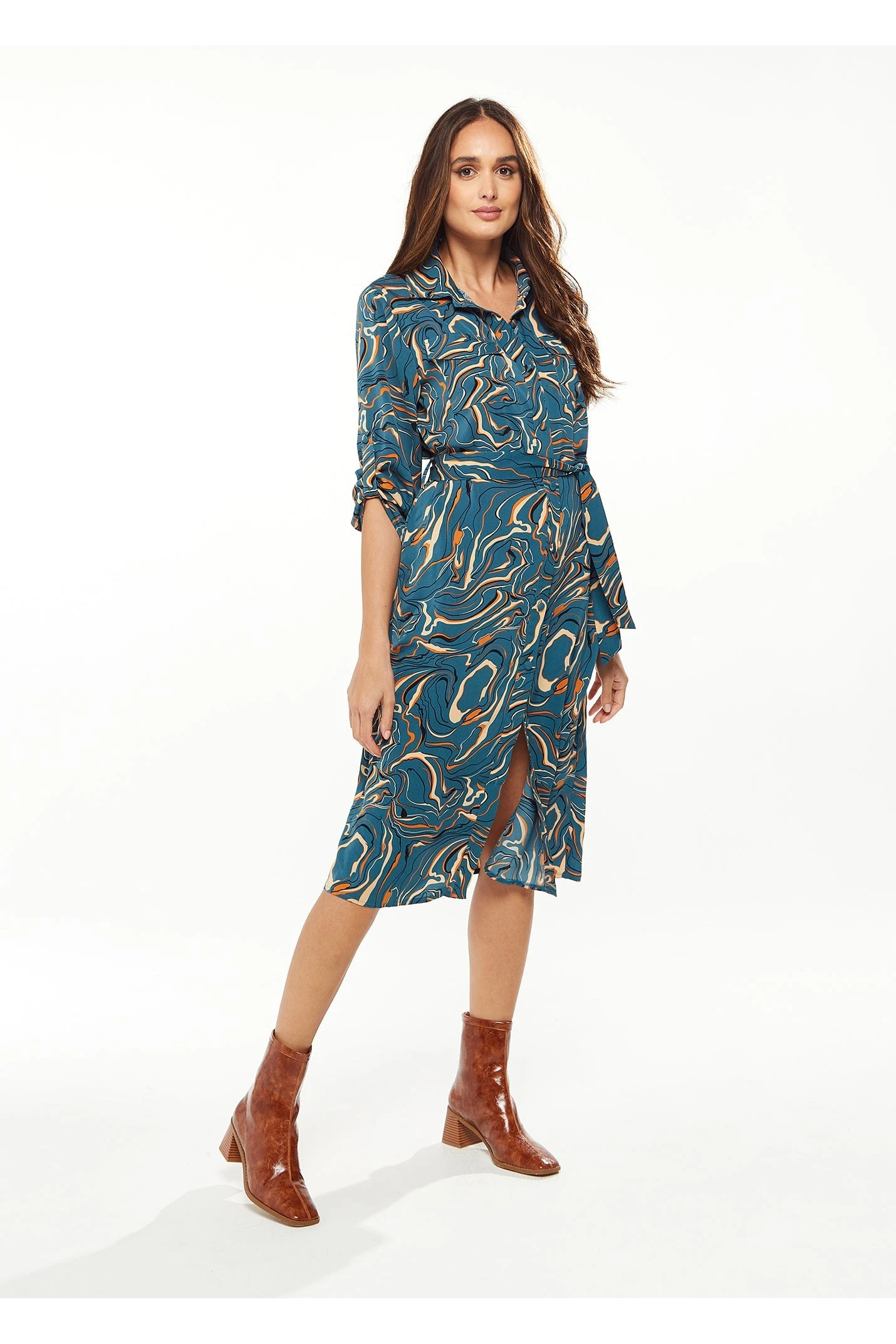 Be the first to review “Liquorish Scribble Print Midi Shirt Dress In Green” Cancel reply