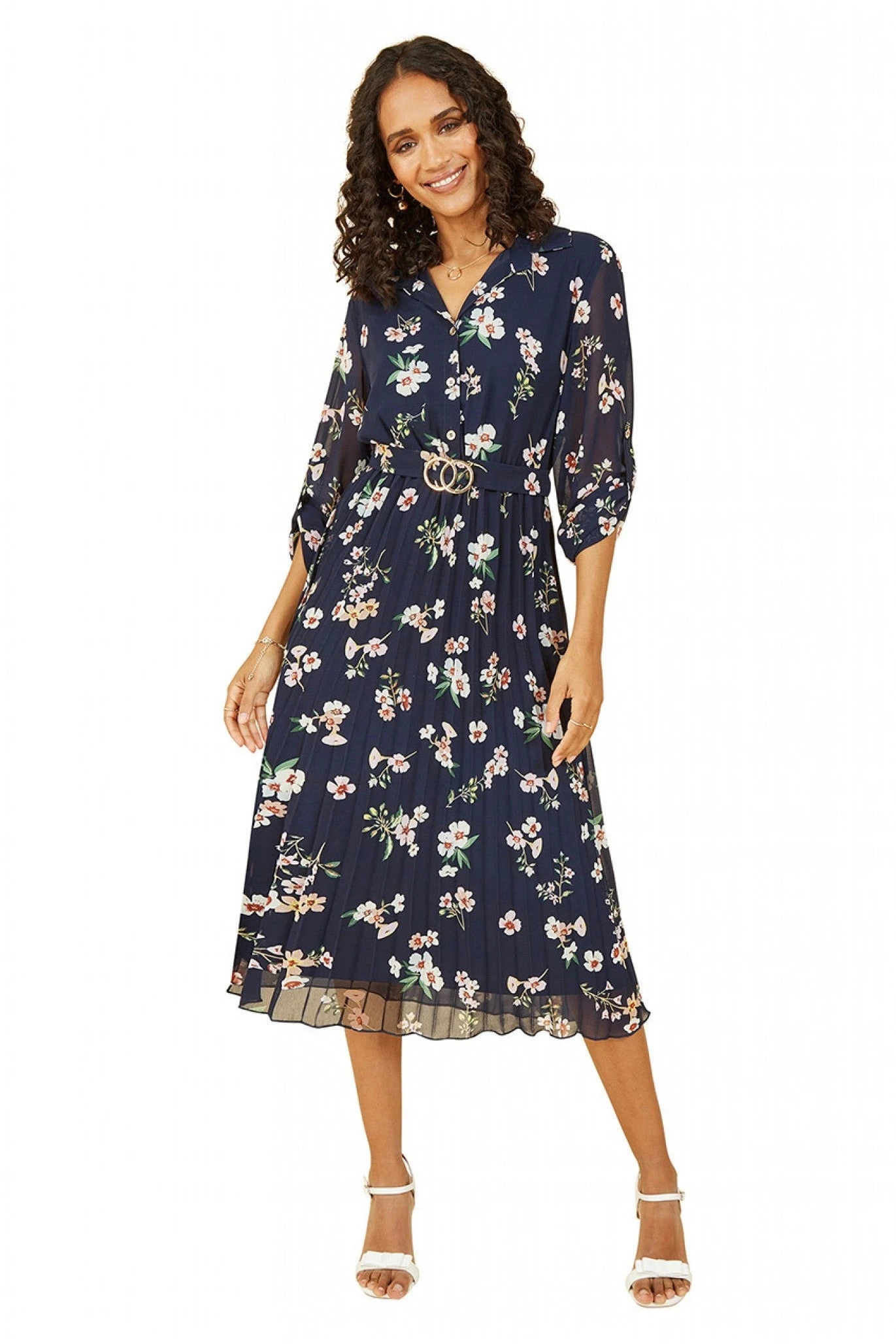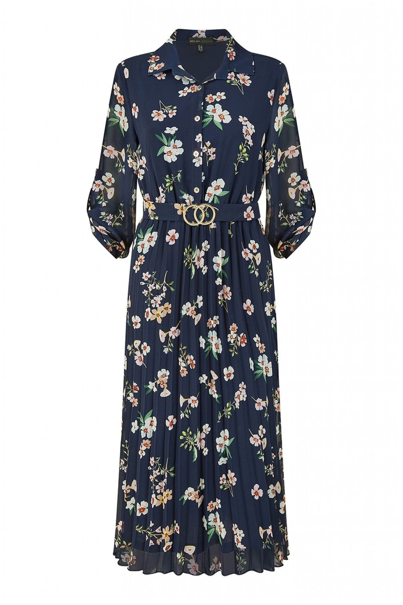Be the first to review “Mela London Navy Floral Print Midi Dress With Gold Buckle” Cancel reply