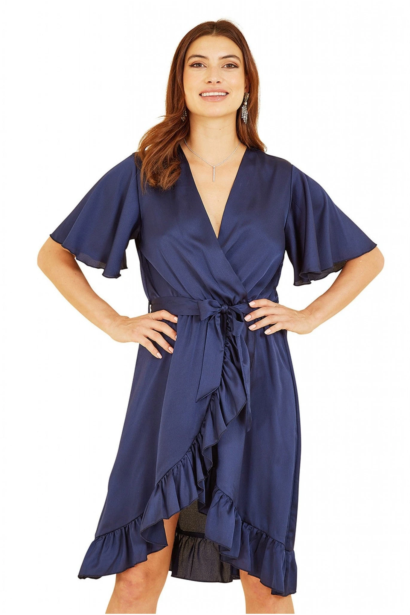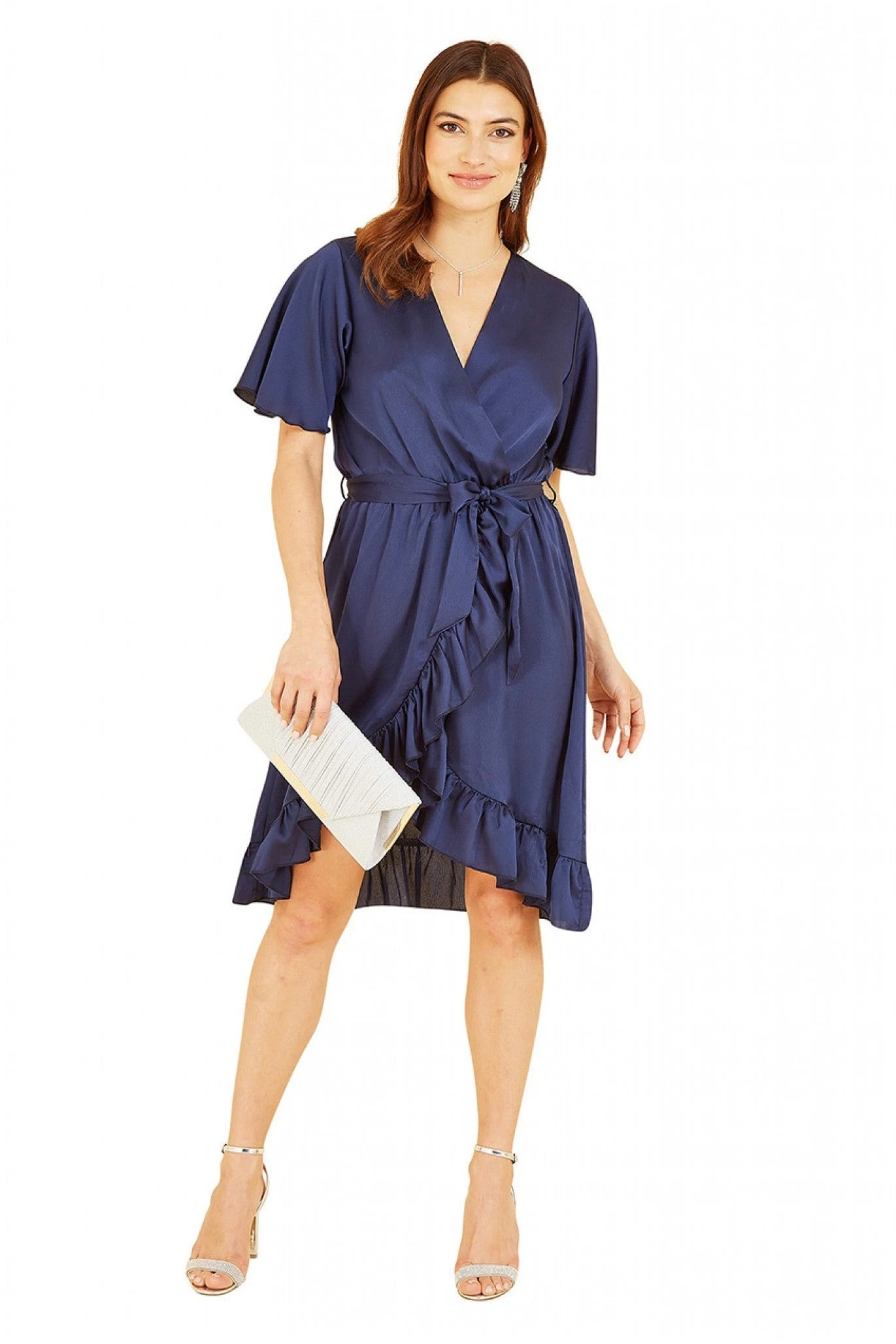 Fun and flirty, this Mela Navy Satin Wrap Dress is the perfect fit for