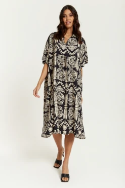 Hoxton Gal Oversized V Neck Detailed Floral Print Mini Dress