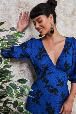 Goddiva Off The Shoulder Corset Style Midi Dress – Royalblue