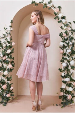 Goddiva One Shoulder Bardot Sequin & Mesh Midi Dress – Blush