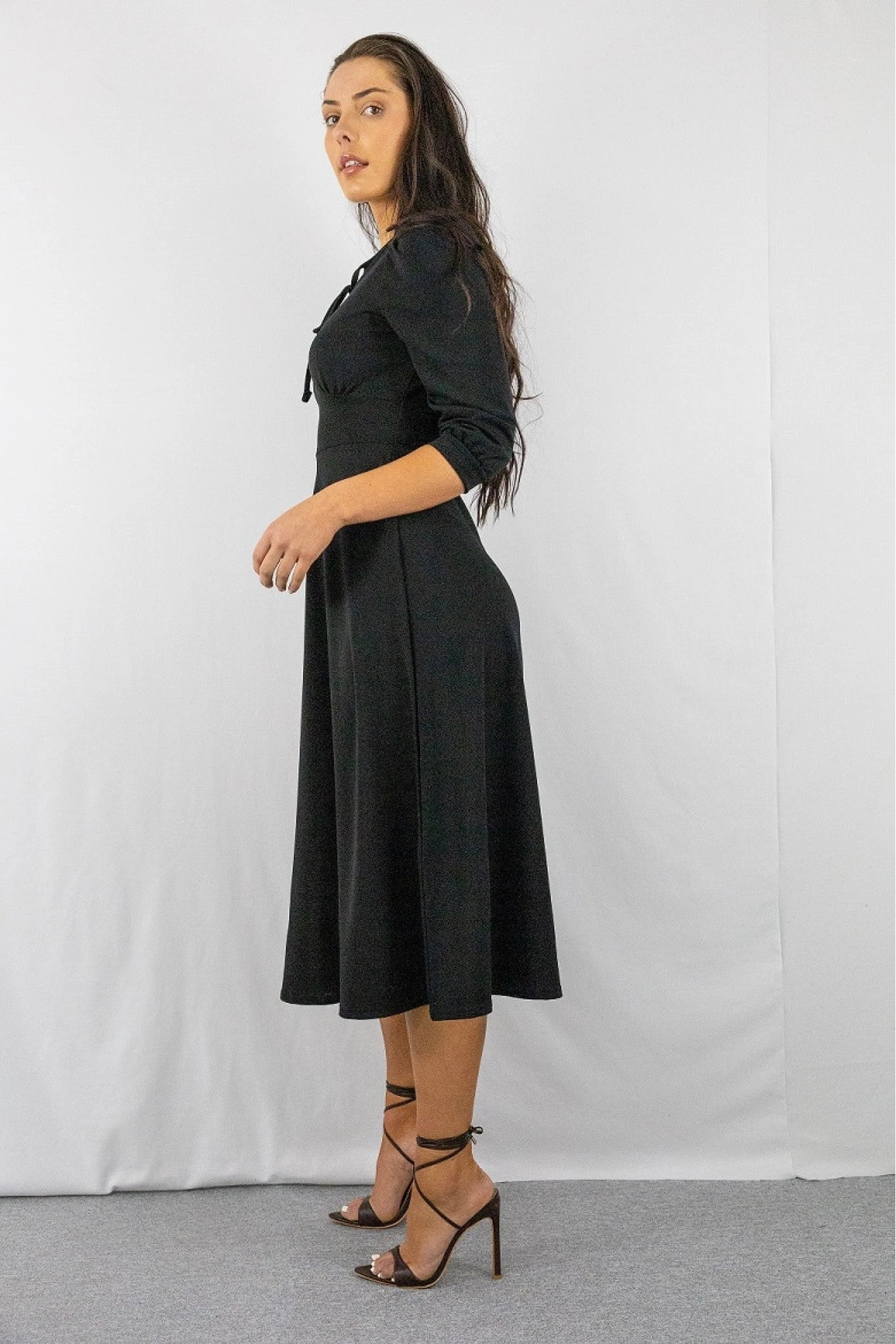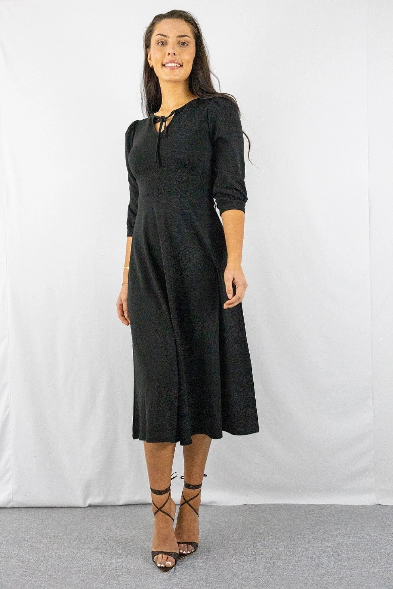 Beautiful Black tie keyhole front midi dress is suitable for your new season wardrobe.This dress is perfect for day wear but just pairing with heels.