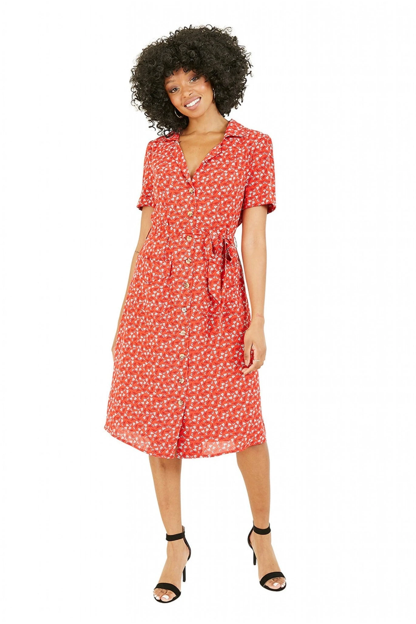 Be the first to review “Yumi Red Ditsy Leaf Print Retro Shirt Dress” Cancel reply